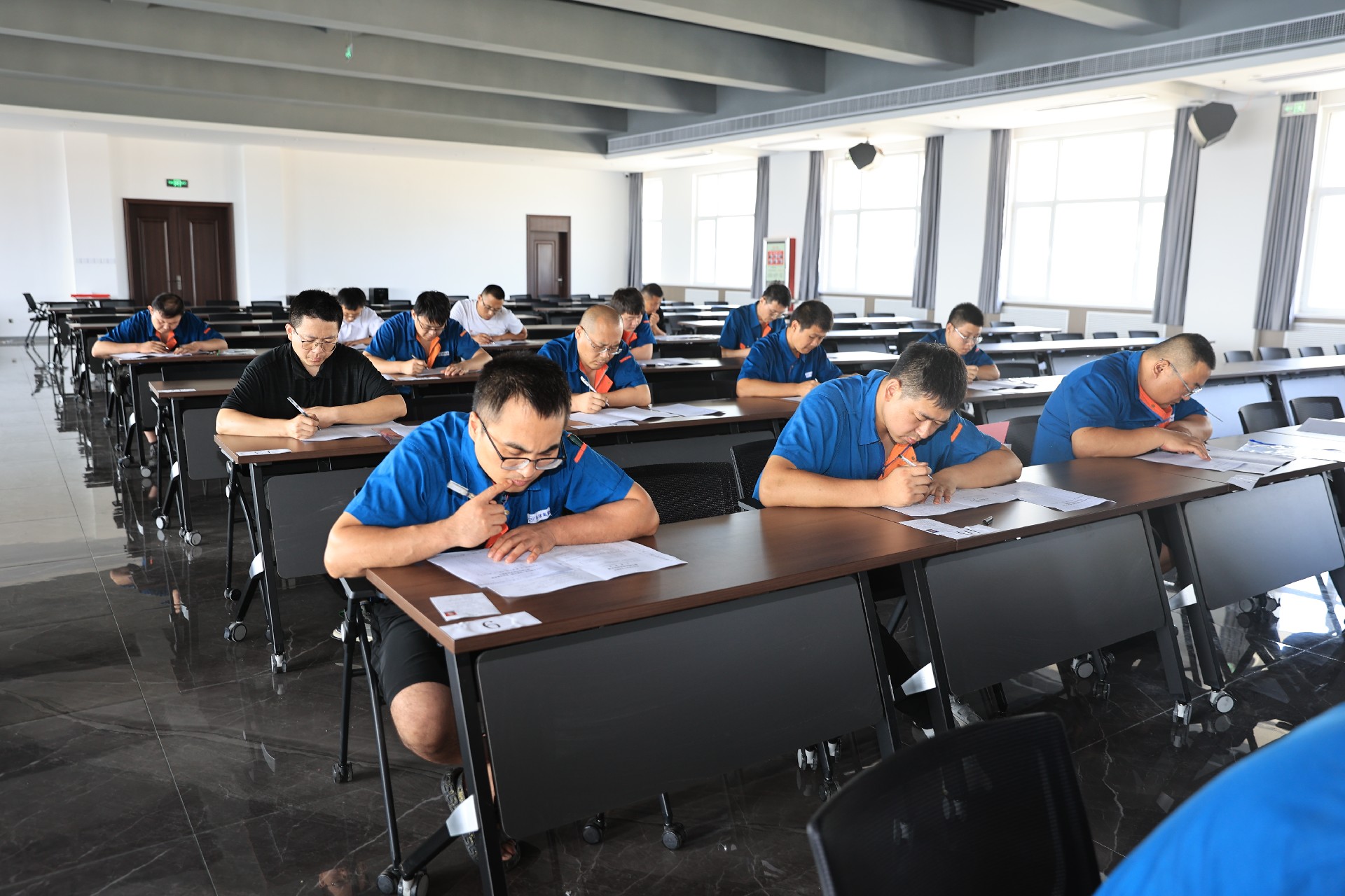 2023年8月25日,福山區(qū)“技能興煙”職業(yè)技能競賽暨煙臺環(huán)球機床裝備股份有限公司第二十四屆員工技能競賽于福潭路廠區(qū)4樓報告廳開幕。本次競賽最終舉辦的工種為鉗工,共5家企業(yè),24位選手報名參賽,福山區(qū)人社局黨組成員、副局長徐雯斐,福山區(qū)總工會黨組成員、副主席劉榮田,公司黨委書記、常務(wù)副總經(jīng)理崔文剛,工會主席陳瑋,企業(yè)管理中心副主任王德祥出席本次開幕式。開幕式后,參賽選手進行了緊張的理論考試作答。