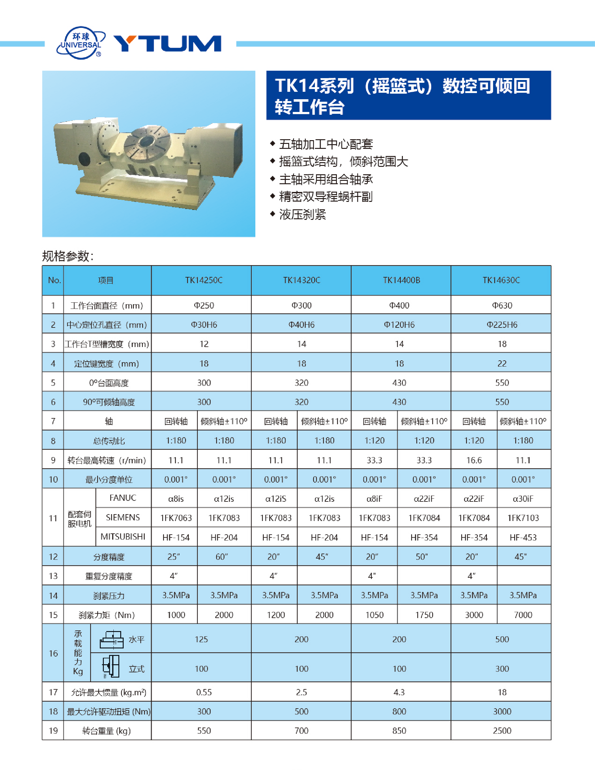 TK14系列(搖籃式)數(shù)控可傾回轉(zhuǎn)工作臺